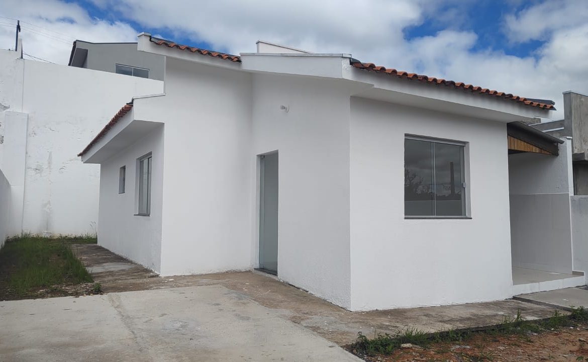 01 Sala – 01 Cozinha – 01 Banheiro – 02 Dormitórios – 01 Lavanderia e entrada para garagem descoberta.