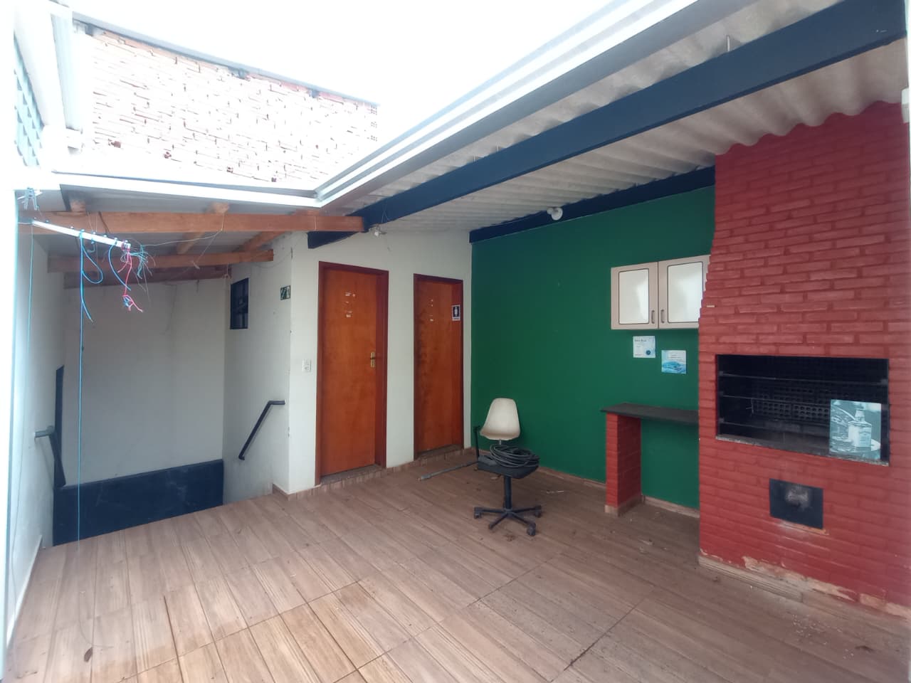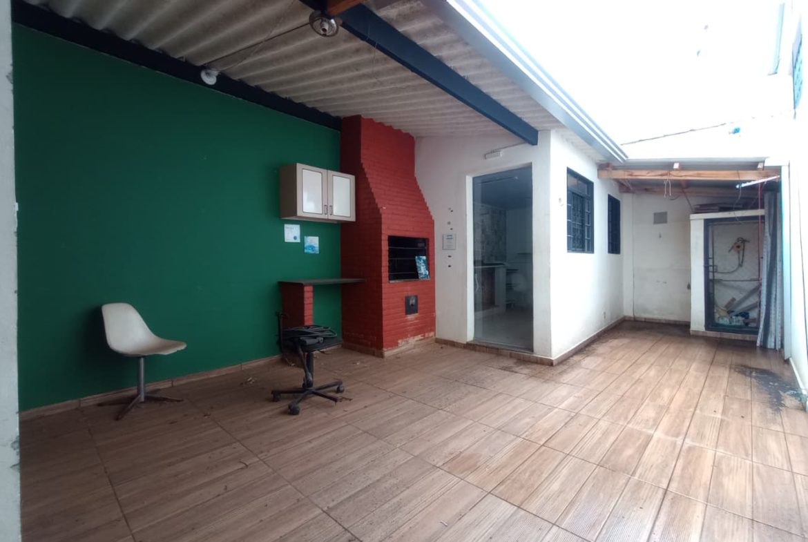 Contendo uma cozinha externa com churrasqueira, 02 banheiro